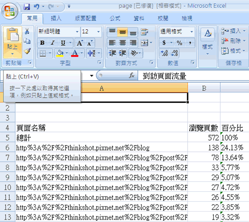 而以上所有分析的數字都可以輸出成EXCEL檔,例:以下則是到訪頁輸出的統計表!