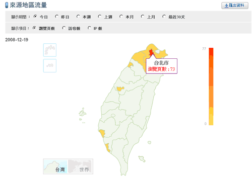甚至也可以看來源地區的分佈,例如台灣各縣市