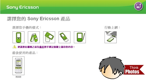 電腦端:上SonyEricsson網站下載最新的手機更新軟體
