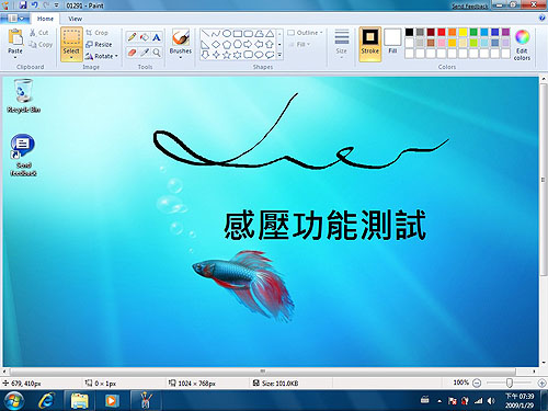 這個更讚了..內建的小畫家還支援感壓功能.我想以後平常人都可以是彎彎的隨意創作