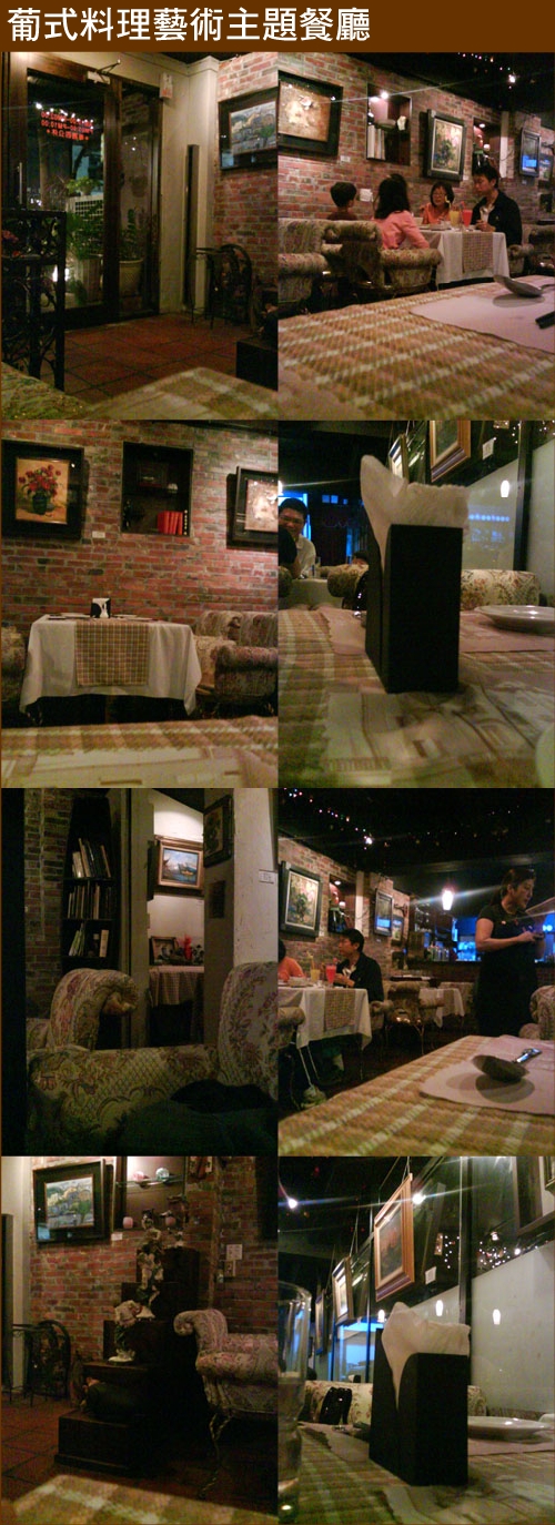 這間葡式料理藝數主題餐廳氣氛很棒.牆上掛滿著畫家的作品(有的標價都有出售)