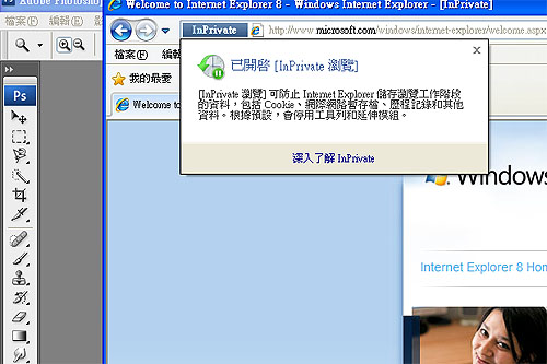 開啟InPrivate後..會在網址列旁顯示InPrivate作用中....