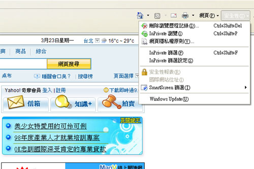 在Windows7身上IE8的使用經驗..除了比IE6.7更快速的執行速度以外...
