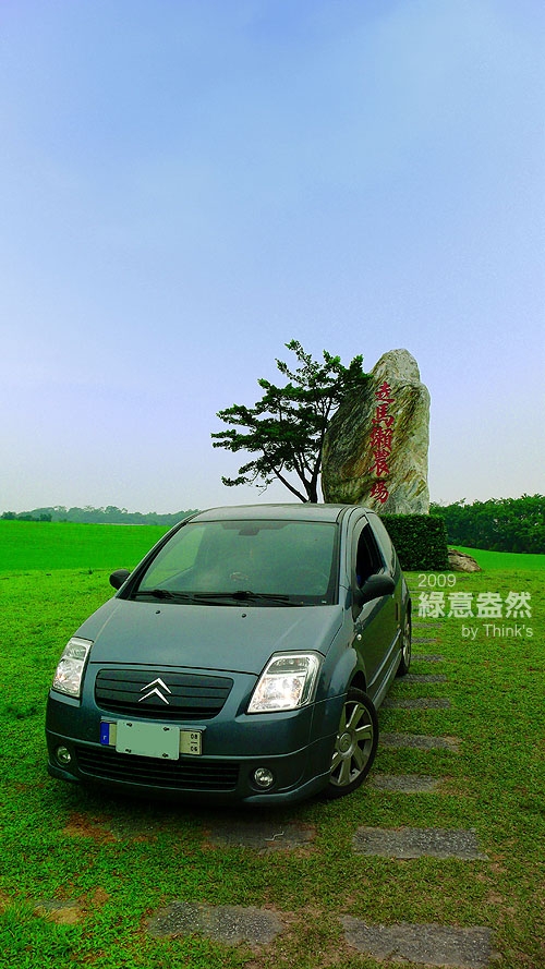 也在現場人員予許下,在不破壞天然草皮前提下..慢慢的開上草原..合影一張...